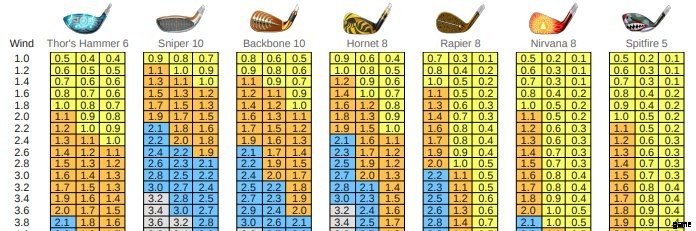 ゲームにハマり始めると、「推測」だけでは不十分であることがすぐにわかります。競争力を高めるには、より正確である必要があります。 Golf Clashのウィンドガイドまたはウィンドチャートを入力してください。これは、使用しているクラブの種類と風の強さに基づいて、風をどの程度補正する必要があるかを示すチャートです。しかも遠距離狙撃手が使うドープカードと同じ。違いは、これは弾丸ではなくゴルフ ボール用であることだけです。