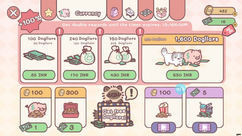 通りを掃除したり、到着したコイントラックをタップしたりするなど、外で何かをすることでコインを獲得することもできます。より多くのコインを獲得するために視聴できる広告もあります。 Dogllars はプレミアム通貨であるため、入手が難しくなります。このプレミアム通貨を入手する 1 つの方法は、家の外にあるパッケージを使用することです。配置をタップするだけでアニメーション パッケージのランダムな家具に移動すると、Dogglar を獲得できます。