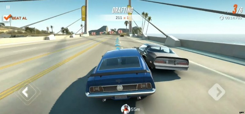 従う必要があるレーシング ラインを効果的に認識できるように、ラインは青色で表示されます。ただし、シフトやドリフトが必要な場合は、これらの線が黄色に変わります。しかし、レースを制するためには、他のドライバーを追い抜いたり追い越したりして、相手の前に出ようとする動きを避けられない場合があります。これはまだ可能ですが、道路が空になったら、再びレーシング ラインをたどるように最善を尽くしてください。
