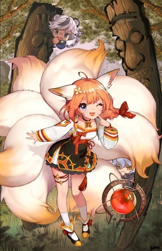 ガラムはガーディアンテイルズに登場する遠距離ウォーターヒーローで、バスケットと弓を使用します。九尾の狐の賢者である狐の洞窟での広範な修行の後、ガラムは賢者の地位を獲得しました。このヒーローはナリの古い仲間であり、味方であり、ライバルであり、より強力な魔法を持っています。