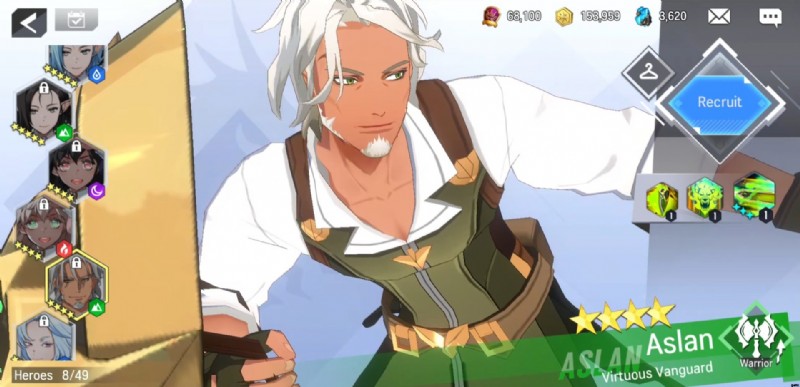 ウォリアークラスは、一般的に適度に高い攻撃力とまともな健康を持つキャラクターです.ガーディアンのように、彼らは最前線に属しています。しかし、彼らの役割は主に攻撃です。アスランの優れている点は、敵の防御を無視して、より多くのダメージを与えることができることです。彼はまた、味方の攻撃力を高め、その過程で彼らをより強くすることができます.どんなシチュエーションでも使える優秀なキャラクターです。
