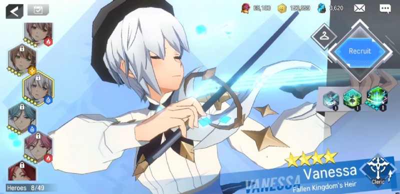利用可能な最高のヒーラーが必要な場合は、光の要素であるヴァネッサ・テレーズ・アルデルーンがあなたのキャラクターです.アルデルーン王国の第四王女で、ヴァイオリンの名手。ロードオブヒーローズのヒーラーであるクレリッククラスのキャラクター。彼女の防御力と体力はそれほど高くないため、ヒーラーとして後衛に配置する必要があります。