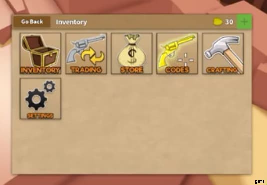 Roblox Wild Revolvers のコードを引き換えるには、最初にオプションをクリックすると、次のような画面が表示されます: