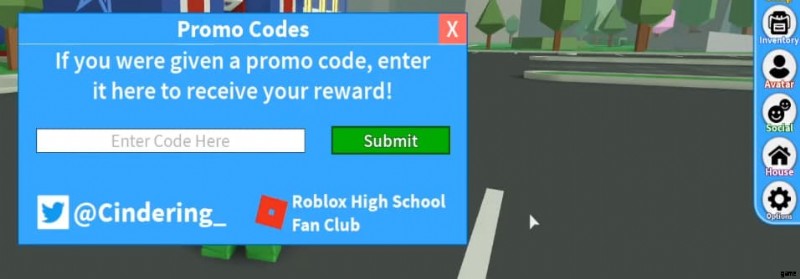 これらのコードを Robloxian Highschool 2 に引き換えるには、[オプション ] をクリックします。 右側のメニューで [プロモーション コード] をクリックします。 をクリックすると、コードを入力して [引き換え] をクリックして報酬を受け取ることができる画面がポップアップ表示されます。