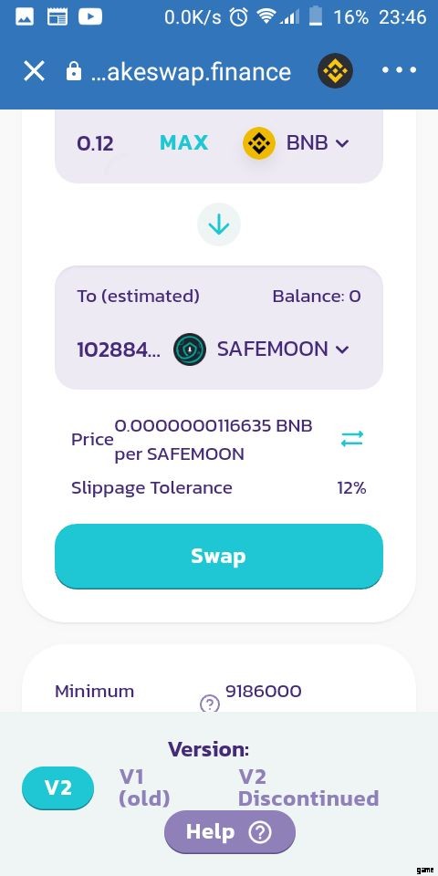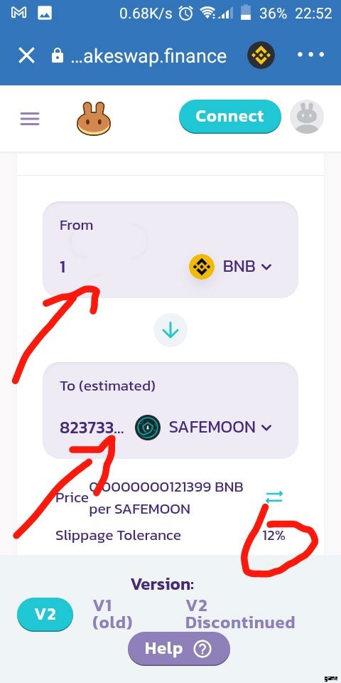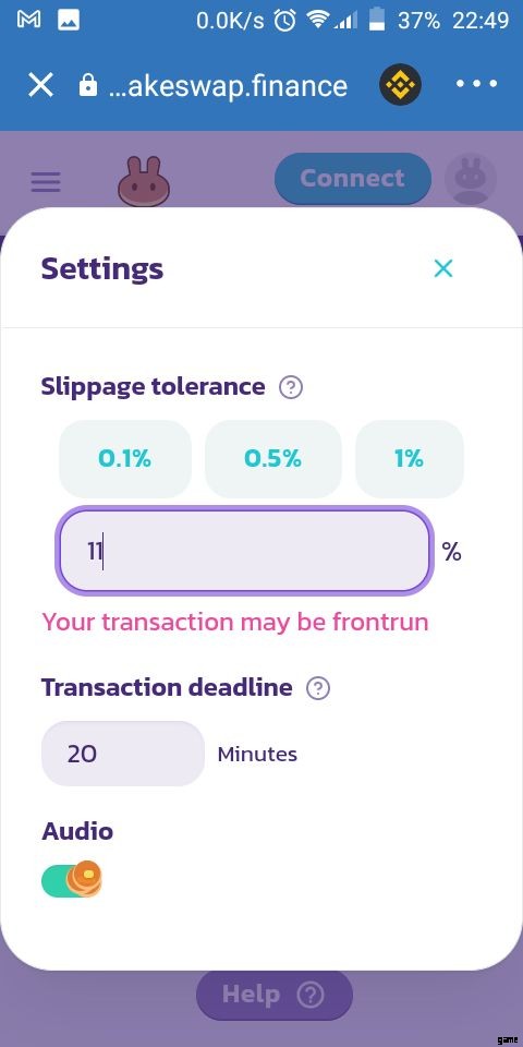 スリッページを 12 %に設定するように設定を交換します :(ガイドでは 11 ~ 12% の間に設定するように言われています) しかし、12% 私には効果がありましたが、11% は効果がありませんでした!