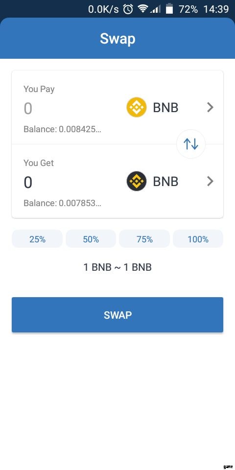 スマート チェーンに変換する金額を選択し (スワップ ボタンの上のパーセンテージ数値から選択できます)、スワップをクリックします