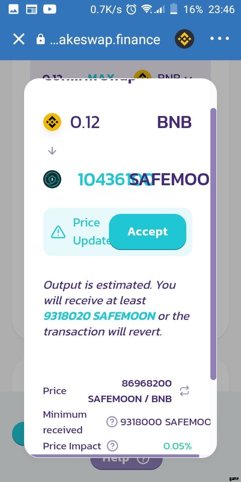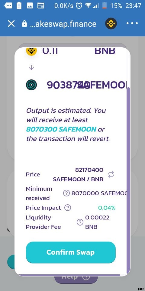 Safemoon を購入しようとしているときに、BNB 残高が不足している など、以前に調査が必要ないくつかの問題にも遭遇しました。 pancakesawp で BNB からセーフムーンにスワップしようとしたとき。