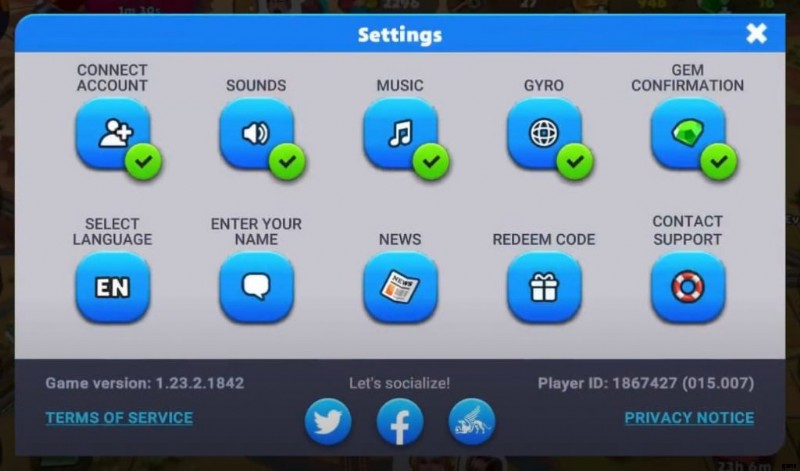 - ゲームに参加します。 設定を探します ボタンをクリックしてください。