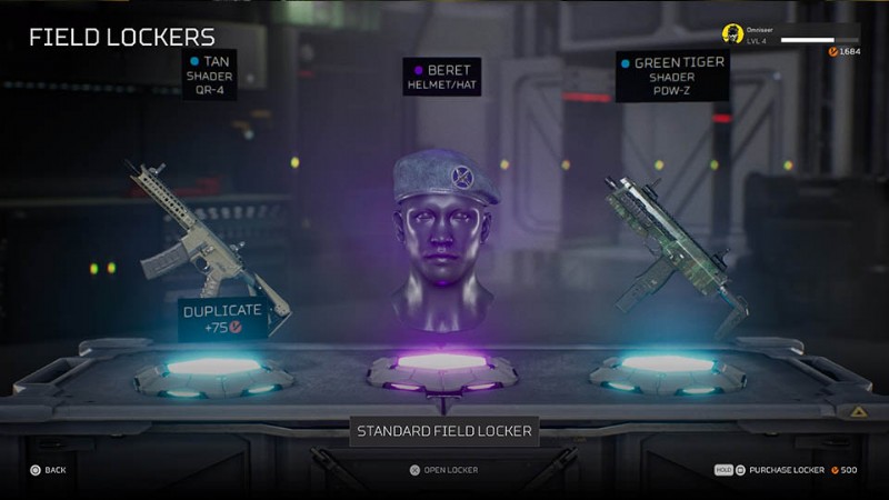 フィールドロッカーから略奪するすべての報酬は表面的なものであり、ゲームプレイの利点はありません.これらは純粋にカスタマイズのレイヤーを追加するためのものであり、さまざまなスキン、ギア、シェーダーでプレデターとファイアチーム トルーパーを強化することができます。