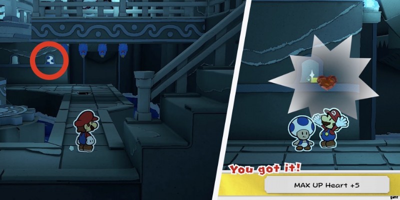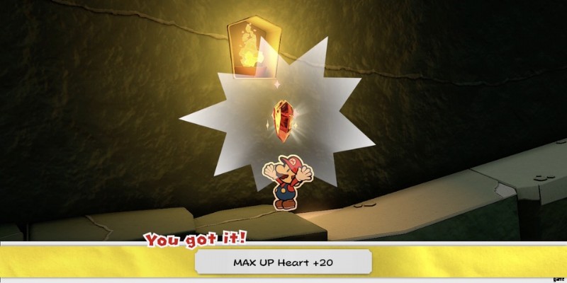 ペーパー マリオは、戦闘で経験を積んでレベルアップするのではなく、ゲームを通じて体力が増えるにつれて、より強力になります。これは、ボス キャラクターを倒した直後や、ボス キャラクターに遭遇する直前など、ストーリーの重要なポイントで発生する可能性があります。 Earth Vellumental に向かう途中で、この MAX UP ハートを見逃すことはできません。