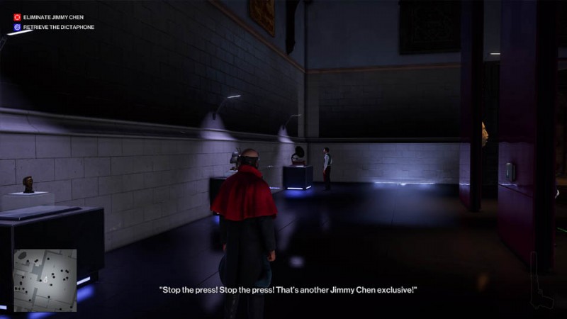 このとらえどころのないターゲットは、マップの北にある砦に潜入しているのを見つけることができます。より具体的には、密航者がギャラリー エリアでウェイティング スタッフの一員に変装しているのを見ることができます アーク ソサエティには、貴重な骨董品が数多く展示されています。密航者は、白いシャツ、黒いズボン、赤いエプロンを着ています。 Jimmy Chen は頻繁に独り言を言うので、簡単に見つけられるはずです。今度は彼を隔離する必要があります。