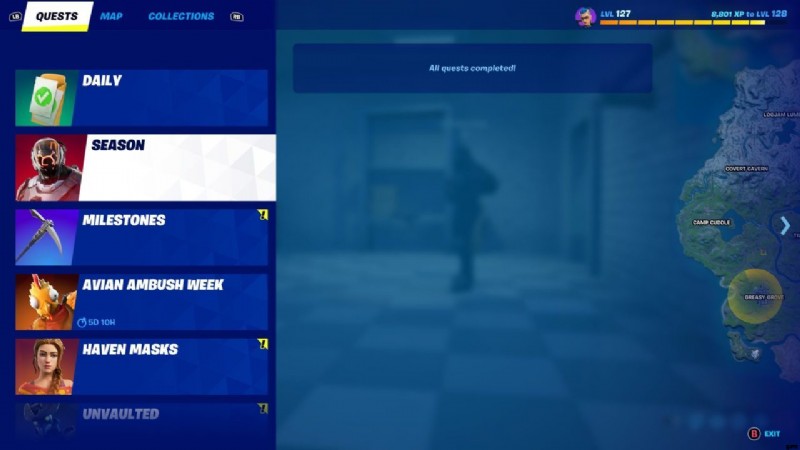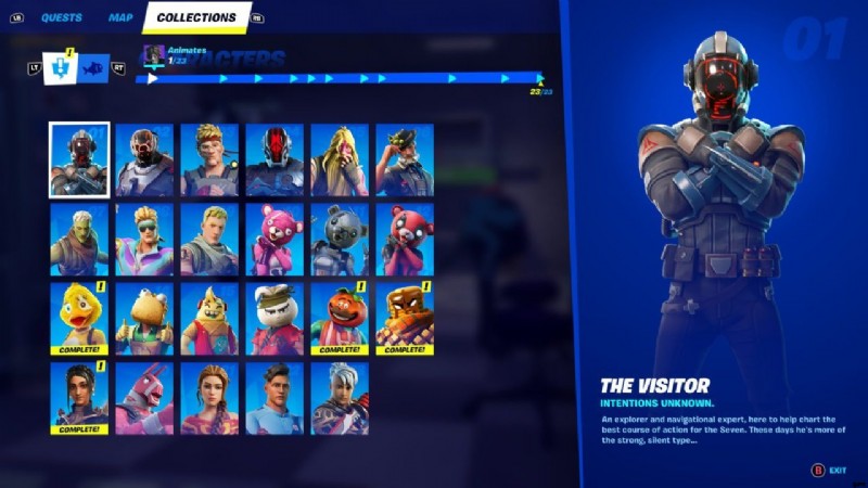 フォートナイト チャプター 3 シーズン 1 キャラが豊富なマップ。メニューに移動して、訪問または完了した人を確認します。キャラクターには複数の場所がある可能性があるため、「完全な」ラベルが付いていない場合は、まだすべてを見つけていません!