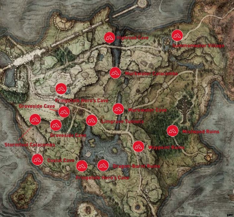 エルデン リング ガイド:リムグレイブ ダンジョンの場所