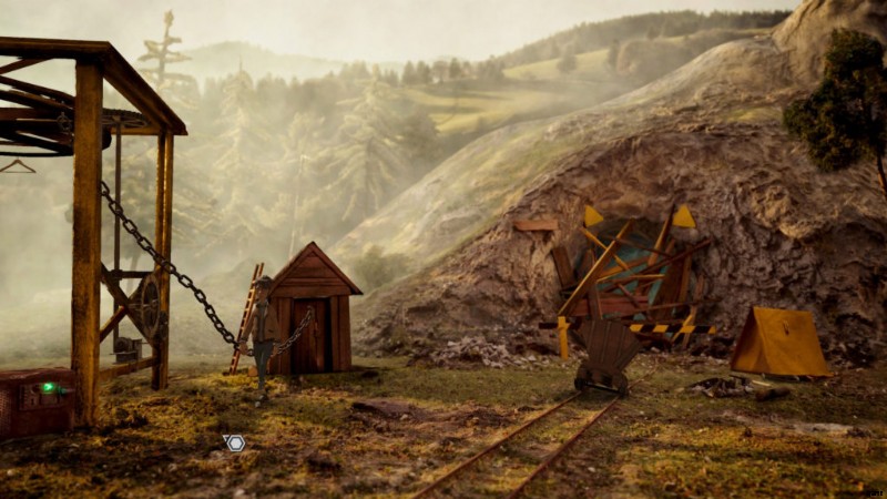 トロッコを 1 回、2 回、3 回使用して割れ目に蹴り込みます。画面の左端にあるつるはしを拾います。歯車のつるはしを使用して、歯車を拾います。バックグラウンドで、歯車を使用できるバルブが表示されるので、バルブ付きの歯車を使用してそこに取り付けます。
