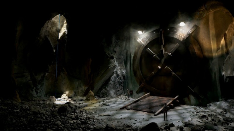 大きな金庫の扉を開ける