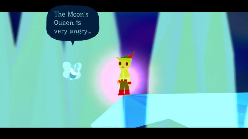 In the spirit world, you’ll end up on an icy platform with no way off. Run around to the left and right until you meet a new character:the Moon Fairy. She’ll tell you what you need to do here and open up the path for you, so head right.