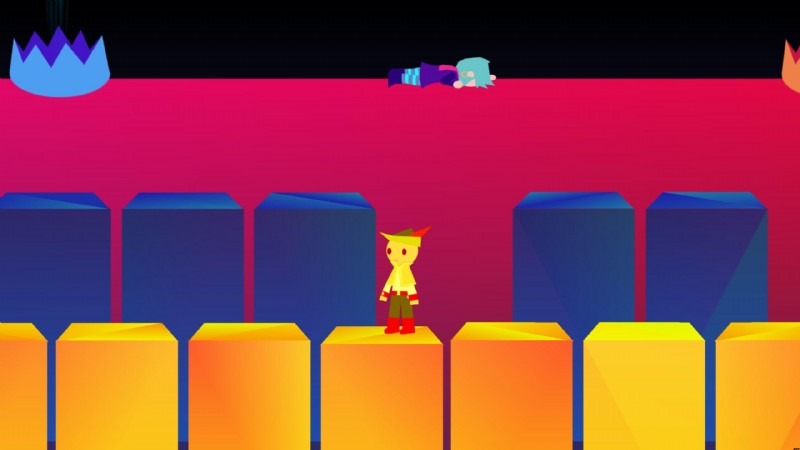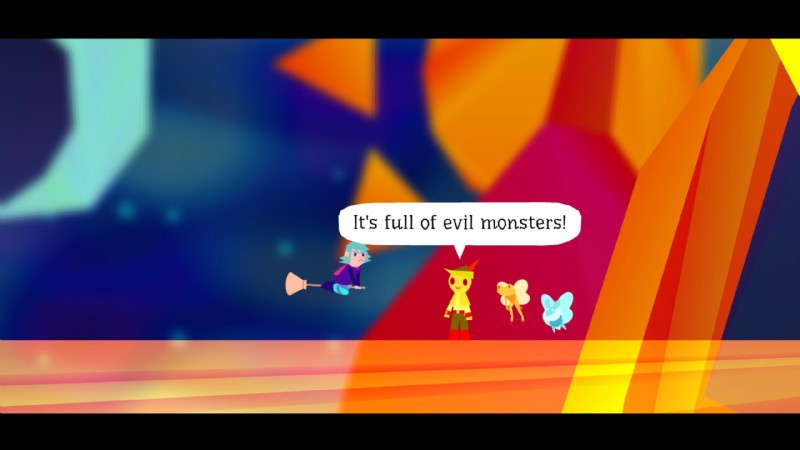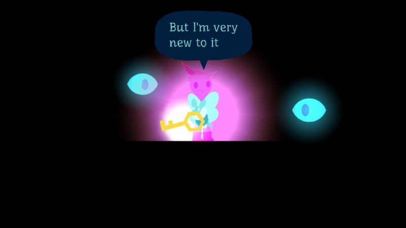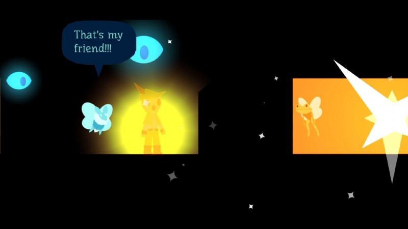 With the second gate unlocked, head up and right. Continue jumping up ledges to the right and you’ll find Sunny, the Sun Fairy. He’s very chill, but he’s also locked in a cage. Jump over his cage and head to the right to find a monster. Run past the monster to the shadow in the right (while avoiding his gaze, of course), and then jump up the platforms to find another monster.