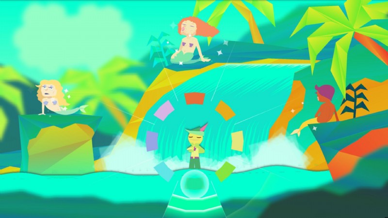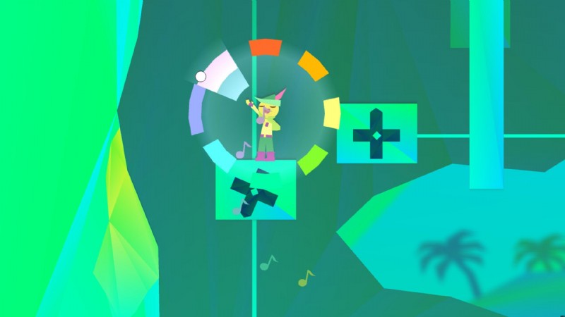 Inside the castle, head to the right and go all the way up the stairs until you find an oscillating wave hovering above a platform. Sing anti-clockwise at the right speed, until your singing matches up with the wave’s oscillation.