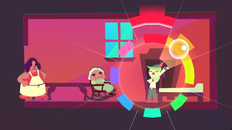 先に進むには、2 つのゴーストを追い払う必要があります。ハゲ男とオレンジ色の髪の息子が外に立っている家から始めましょう。ゴーストとの別の対決のために彼らの家に入ります。今回は、音符は色ではなく方向のみで示されます。ゴーストの動きに注意して、前回と同じように追い払いましょう。
