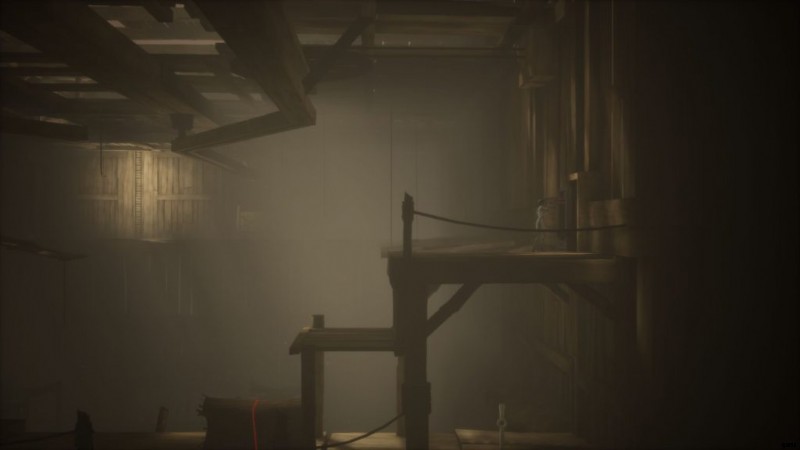 干し草の山を右端に押して、木製のプラットフォームのすぐ下に置きます。右に移動し、レバーを使用して左に引きます。これは、天井の金属トラックに影響します。干し草の山に登り、2 つの木製のプラットフォームを上ります。ここで垂直レバーを引いて、納屋の向こう側にあるはしごに向かって木箱を持ってきてください。