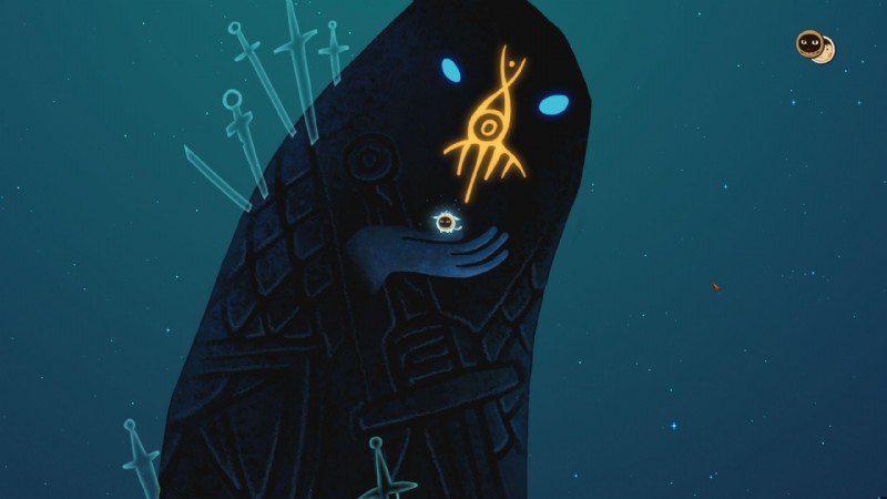 Layh は奇妙な浮遊する夜空の次元にたどり着きます。ここには 4 つの彫像があり、それぞれに開いた青い手があります。 Layh を左端の彫像エンティティに浮かせ、青い手に落ち着かせます。色付きの詳細が表示されるまで待ちます。