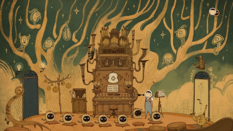 次に、楽譜のすぐ上にあるオルガンの白いスクリーンに注目してください。壁画に鳥の 1 匹の写真が必要です。最初の鳥に設定されていることを確認してください (ただし、コピーを正しく配置する限り、任意の順序でコピーを作成できます)。画面に表示される鳥を変更する必要がある場合は、オルガンの右側にあるレバーを使用してください。