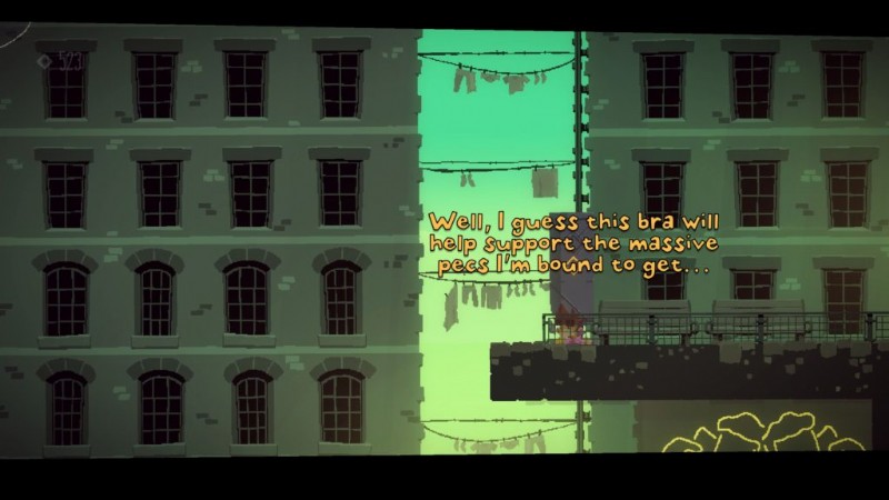 ここでは、ダンのサイズのブラを見つけることができます.シングルブロックのプラットフォームに飛び乗り、ダンとしてブラジャーをつかみます。