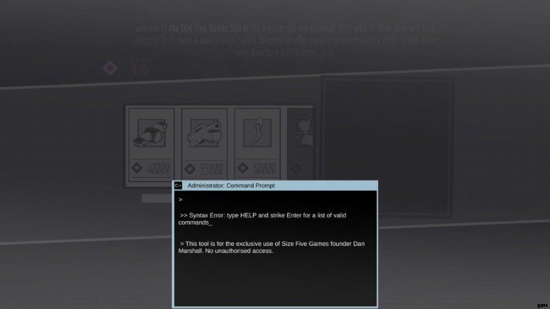 すべてを実行するかどうかに関係なく、続行する方法は次のとおりです。管理者コマンドプロンプトに次のコマンドを入力します:「login dan password1」。管理者アカウントになったので、「setprice all 0」と入力します。これにより、すべてのアイテムの価格が 0 に設定されます。または、好きな金額にすることもできます。ストアでアイテムを購入できるように、十分に小さくすることを忘れないでください。