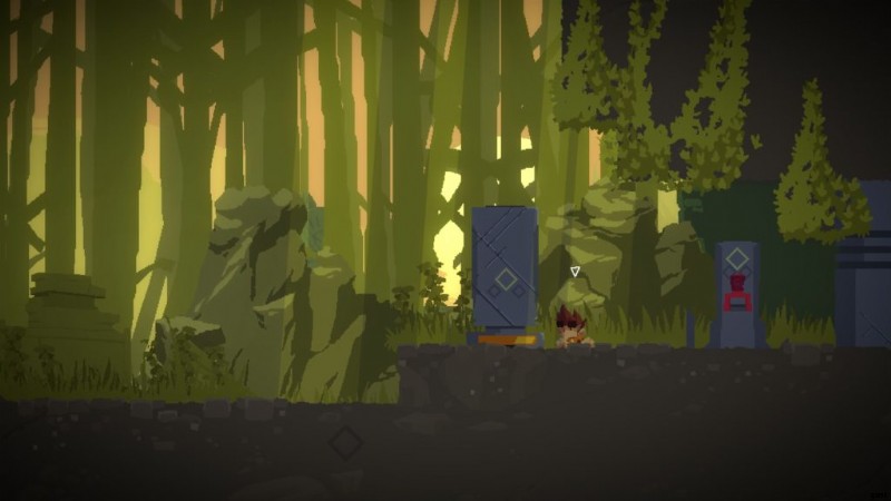 ダンに切り替えて、石のモノリスの前にある黄色いボタンにジャンプさせます。これでベンが元気になります。ベンに切り替えて、彼をレバーまで動かしてください。
