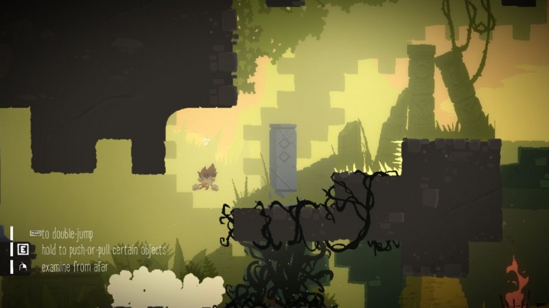 木箱が落ちた場所に戻って、浮いているプラットフォームに飛び乗ってください。ここのボタンを押すと石台が下がります。ボタンから降りたら、石の台があった場所まで走ってください。しばらくすると、石のプラットフォームが再表示され、より高いプラットフォームへと運ばれます。