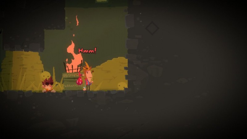 ベンを右端まで動かし、火の右側の壁の横に立つようにします。ダンとして黄色いボタンを押して、ベンを高い台に上げてください。