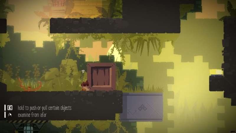 ベンを石のプラットフォームに移動させ、ベンがピットにいないように持ち上げます。次に、ダンとして箱を石の台に向かって動かします。ベンに木箱に足を踏み入れてもらい、木箱を右端までドラッグして、ベンが電源ボックスの近くにくるようにします。