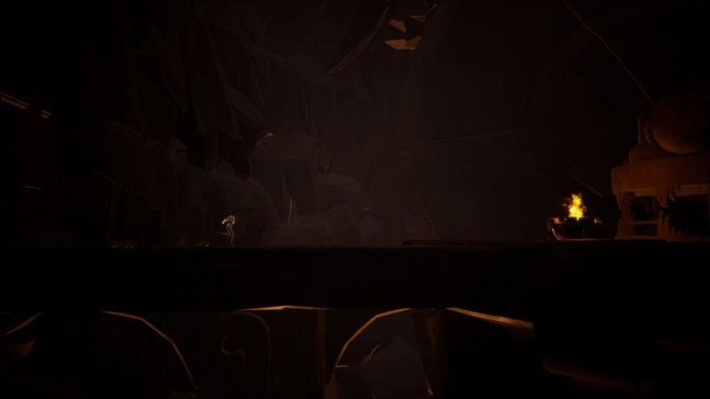 着地したら、燃える炎に向かって右に進みます。炎の左側にトーチがあります。それをつかみ、たいまつに炎を灯してください。