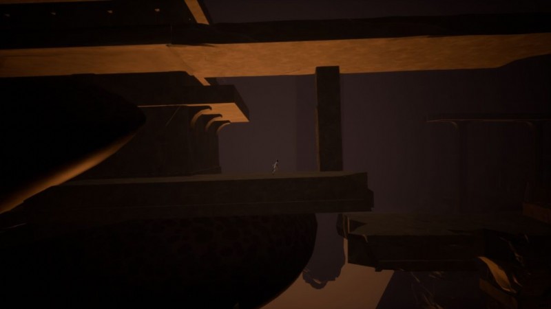あなたは別の石造りの建造物に出くわしますが、あなたを追う危険はまだ収まっていません。石のプラットフォームに登り、石の梁が落ちるのを待ち、斜めの通路を作ります。突き出ているビームに飛び乗り、斜めのビームを上ります。そこにある倒れた石板に登り、突き出ている 3 つのビームを飛び越えて次のプラットフォームに行きます。