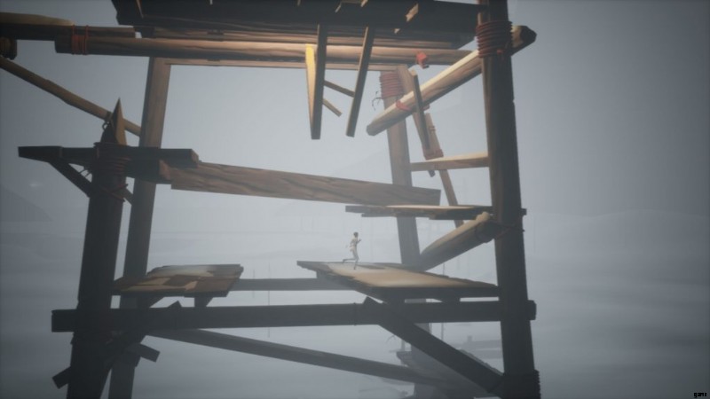 前と同じように、休むことなく右に走り、丸太に登り、モンスターが去るのを待ちます。木造の構造物に向かって右に進んでください。