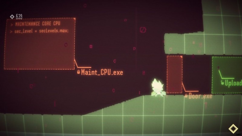 あなたは今、隠れ家のセキュリティ プロトコルを表すコンピューター化された世界にいます。またはそのようなもの。紫色の腐敗を避けながら、左端から下に進みます。サイバー世界には銃がないので、撃ち落とすことはできません。あなたの目的は、現実世界と同じように隠れ家をナビゲートし、実際にいる「VR」ルームにたどり着くことです。