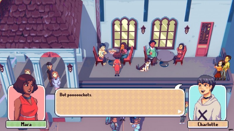 この章では、マラはリンデンに行って謝罪しなければなりません.バー エリアを出て、階段を下り、チェス盤のテーブルを通り過ぎて、オープンエアのダイニング エリアに出ます。