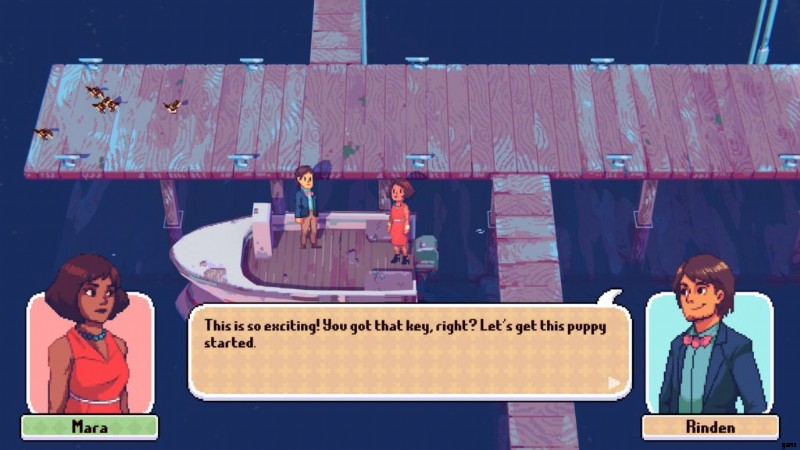 ヒッピーはボートの所有者であることを認め、話しかけるとボートの鍵を渡してくれます。ボートの鍵を手に、ボートに戻って操作してください。