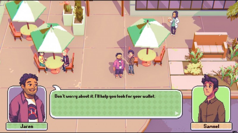 次の謎については、左に向かうと、ゴミ箱の隣に立っている青い髪の「ヒップスター ボーイ」が見つかります。 GamerForge の場所を尋ねられます。好きなように答えてください。そうすれば、彼らは向かってきますが、また時間がかかります。