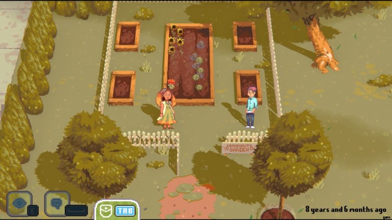 庭師が自分の花について話した後、画面の北西に行くと、花が育つ小さなコミュニティ ガーデンがあります。赤い花を操作して、それらをつかみます。