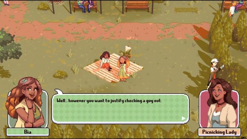 空いている場所を調べた後、画面のはるか南に行き、庭師を見つめているピクニック毛布の女性に話しかけます.彼女と話した後、庭師と話してください。