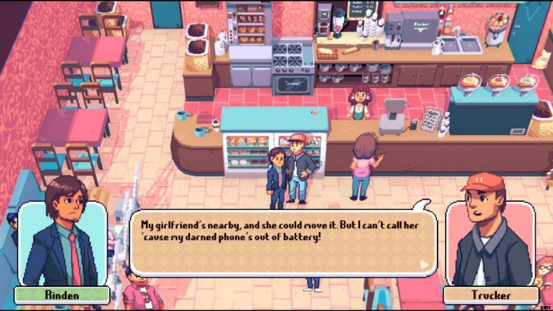 次に、赤い帽子をかぶったトラック運転手と話します。彼と話した後、インベントリを開き、電話を彼に使用します。このようにして、彼はガールフレンドに電話して、あなたに割り込んでもらうことができます.