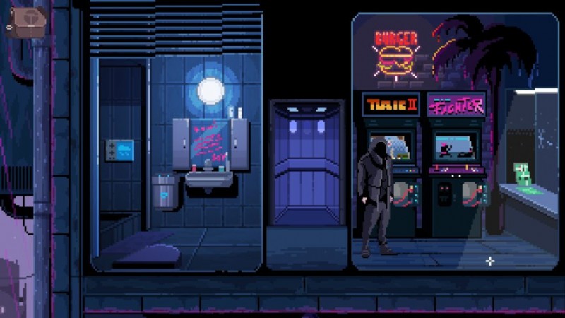 エレベーターのボタンを押して上階へ。ここには2台のアーケードマシンがあります。左側のアーケードのコイン リターン (コイン リターンは画面のかなり下にあります) を開くと、ネイサンがここでコインを拾います。