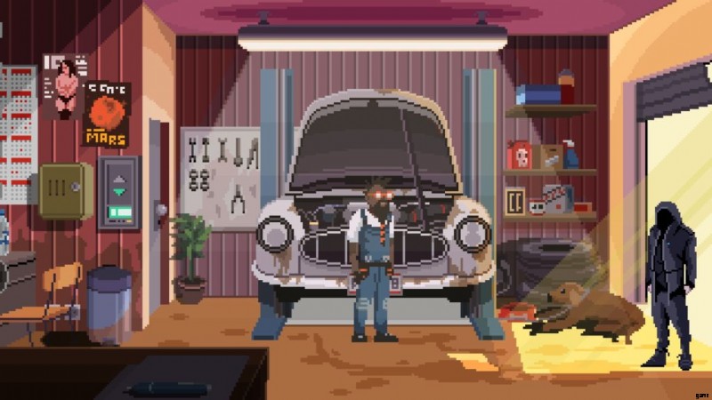 ガレージでのカットシーンの後、メカニックに話しかけ、ツアーバスの修理について尋ねます。整備士の名刺を獲得できます。