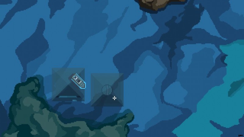 出航すると、ある程度ランダムに生成された広大な「海」の画面にいることに気付くでしょう。主な目的地は常に海画面の左下になります。