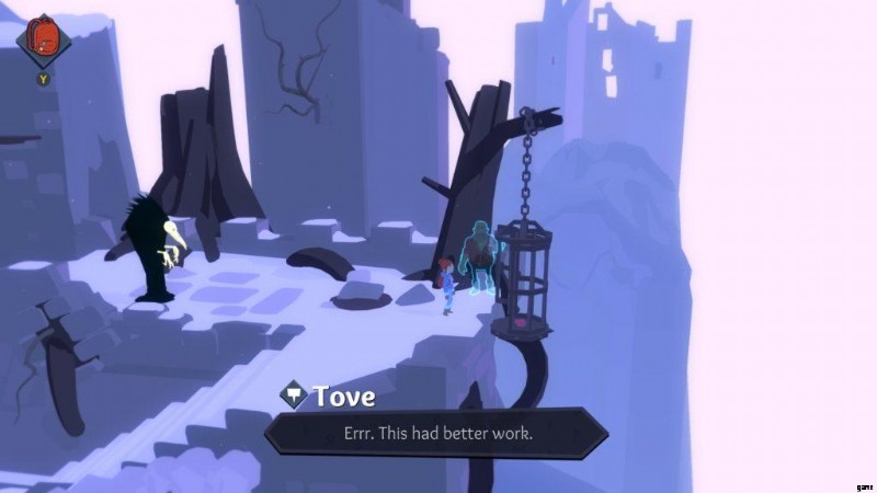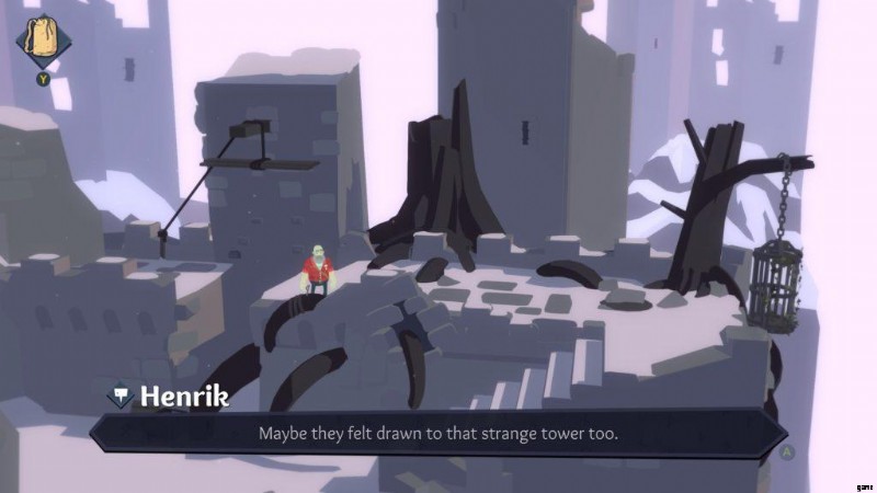 孤独な木のエリアでカラスの獣を捕まえた後、獣がいた場所を通り過ぎ、トーベとしてレンガを使って反対側に登ります.そこにある黒いロープをほどいて、ヘンリックのために木製の橋を降ろしてください。