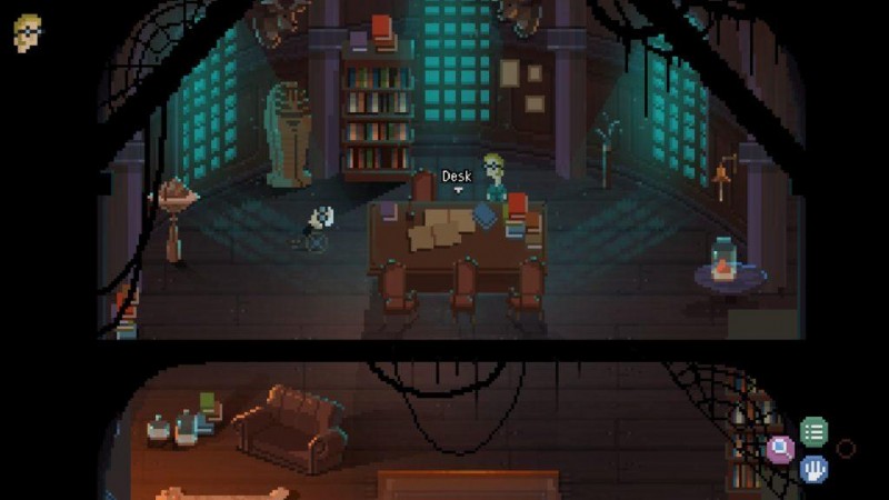 ドアベルが鳴ったら、ドアを操作します。この後、研究の教授に戻り、彼と話してください。次に、書斎の北側にあるデスクを操作します。