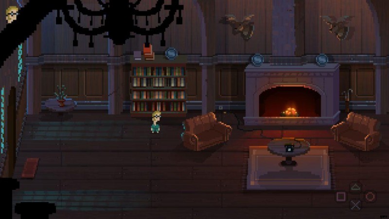 教授が目を覚ましてあなたに話しかけた後、書斎のクマの敷物の近くのソファから扇風機を手に取ります。メインルームに戻って、インベントリにある扇風機を暖炉の残り火に使ってください。