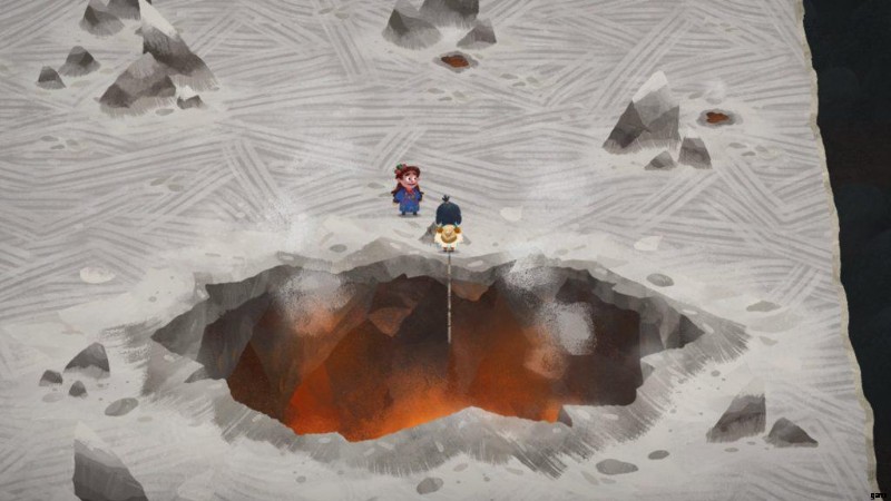 これにより、ヤギの「高速移動」メニューのロックが解除されます。火山のクレーターに行くために使用します。東へ進み、ピンコに話しかける。ロープを降りたら、ロープを引っ張ってピンコに知らせてください。
