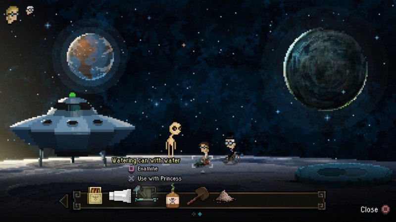 道路にうんちを入れたビニール袋を使用してください。その後、再びバイクで西大橋に戻ります。西橋を出ます。プリンセスの復活には 3 番目のステップが必要ですが、惑星間ビーコンを使用してセレナイトに戻ることで、これまでの進行状況を確認できます。